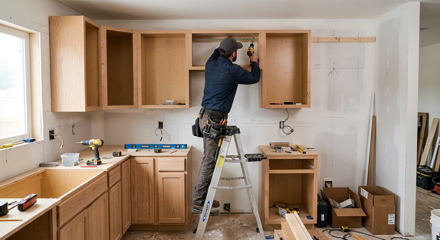 New semi-custom or stock cabinets · Installation · Hardware