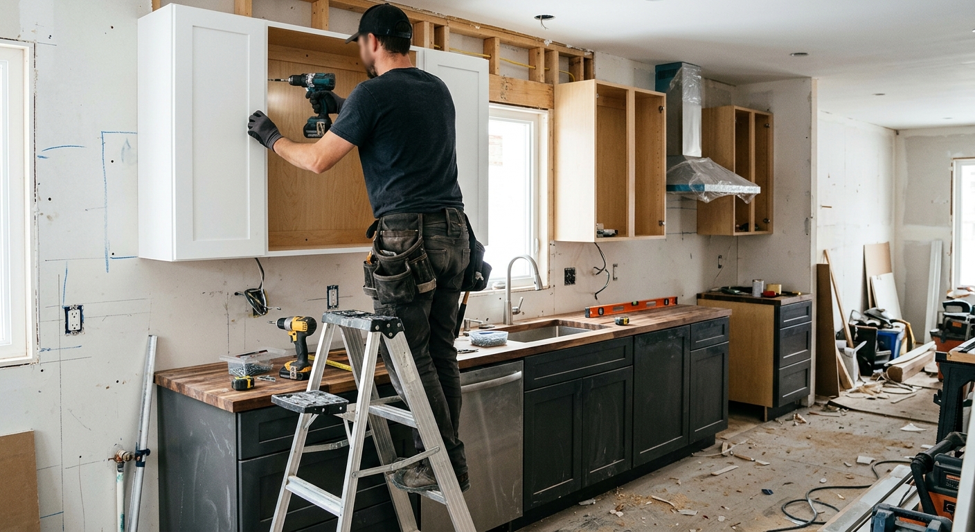 Kitchen remodel timelines in Exeter depend on scope: cabinet replacement with countertops typically takes 2-4 weeks; a mid-range renovation takes 4-8 weeks; a full gut renovation 8-14 weeks. Lead time for custom or semi-custom cabinets is 4-12 weeks from order to delivery — factor this into your planning. Your licensed Exeter kitchen contractor will provide a detailed project schedule at estimate time, including when permits are required and the order of trades (demo, rough-in plumbing/electrical, cabinets, countertops, tile, paint, appliances).